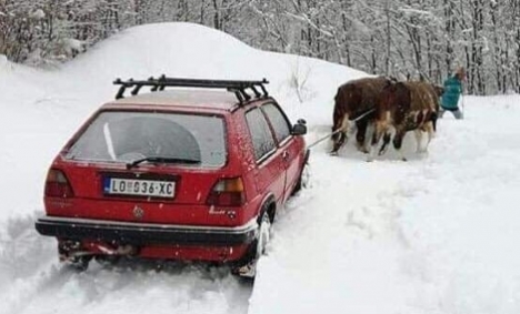 Снег који пада у лозничком крају завејао је планинска села, у којима се мештани на разне начине сналазе како би одглавили завејане аутомобиле. Да су у помоћ притекли и волови показује фотографија на друштвеним мрежама, коју је објавила страница “Урбане легенде Лознице”. На фотографији се види завејан "голф 2" ког вуку волови, а засад није познато у ком лозничком селу је та фотографија забележена.